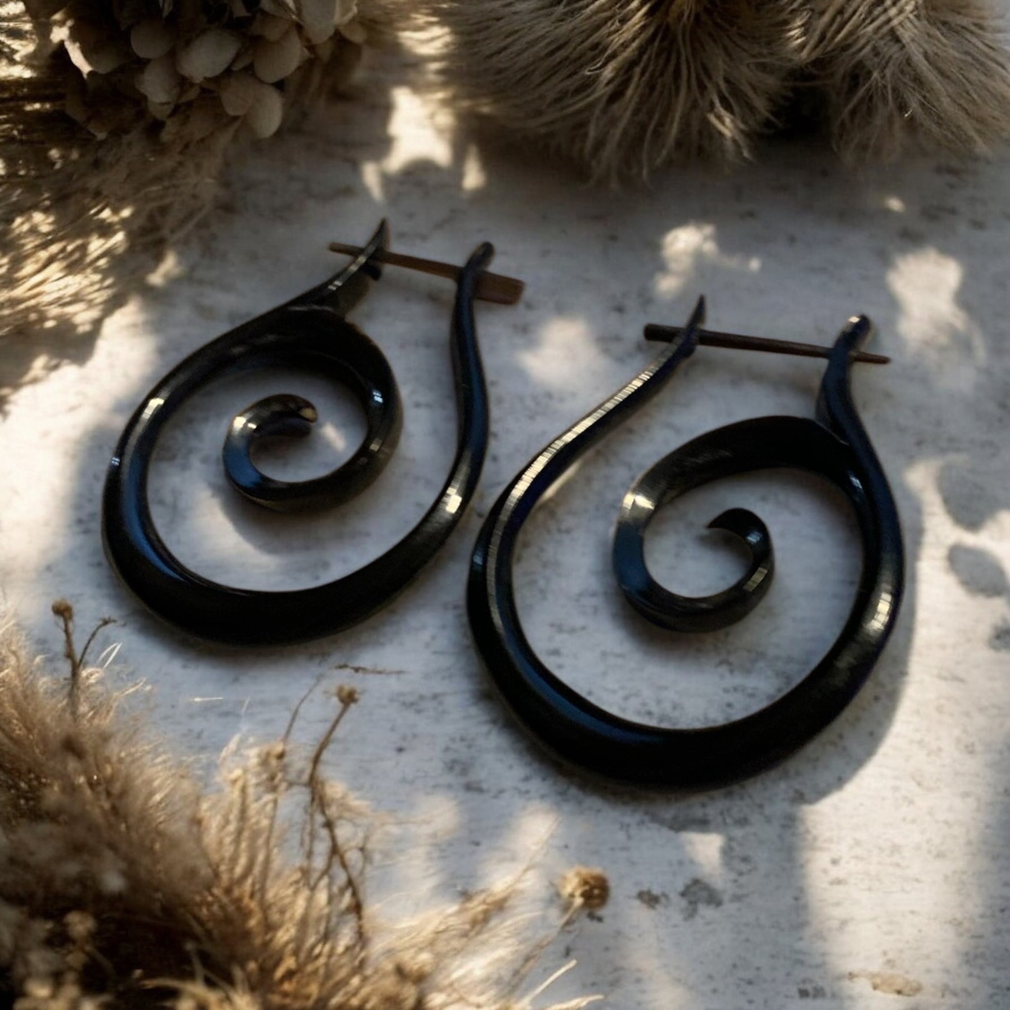 Dare to stand apart with these Reverse Spiral Wood Post Earrings, where raw authenticity meets fearless style. Handcrafted from salvaged water buffalo horn, each pair emerges with its own distinctive character, no two are identical. The striking reverse spiral design commands attention while the natural color depths and organic variations prove that imperfection is the ultimate statement.
